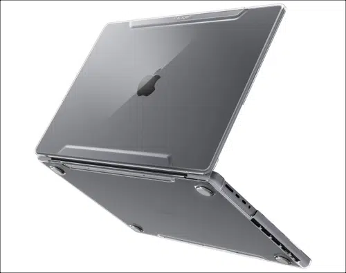 Besides, it has added bumps around the hinge, and TPU rubberized feet provide a non-slip grip and protect against drops. Finally, I liked its snap-on design that makes installation simple. The precise cuts ensure proper heat ventilation and easy access to USB-C ports and charging.