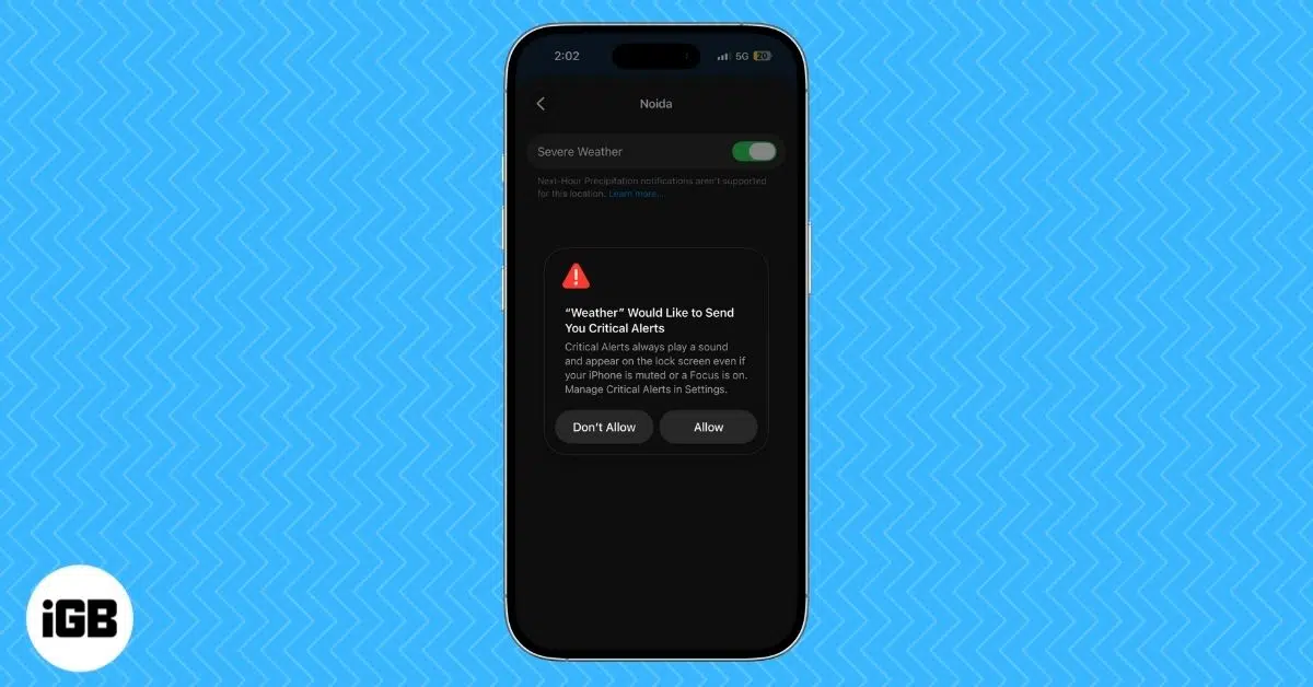 - Allow Critical Alerts (if available): Let urgent notifications from third-party weather apps break through Silent mode and Focus modes.