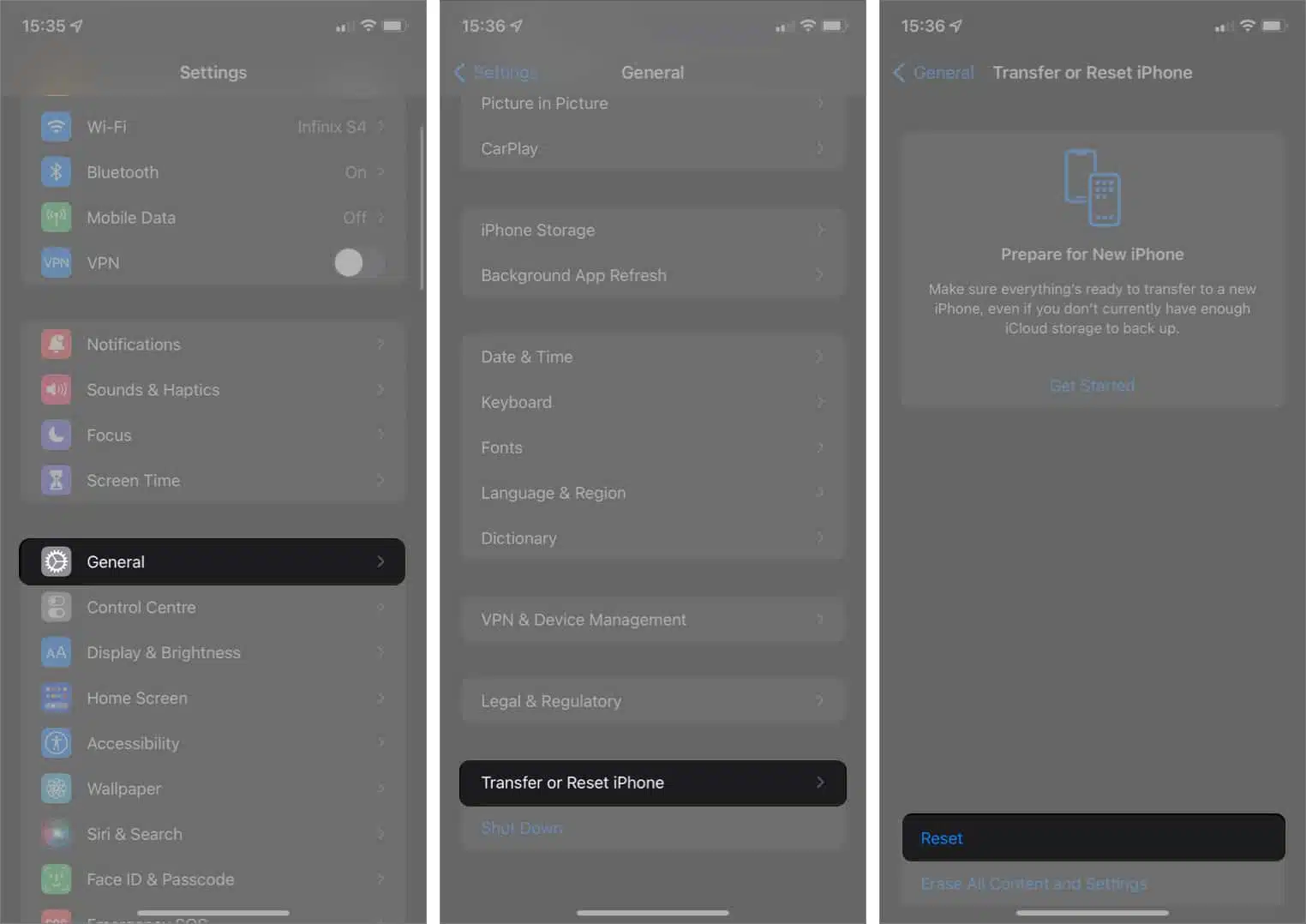 - Scroll down to the bottom and tap Transfer or Reset iPhone.