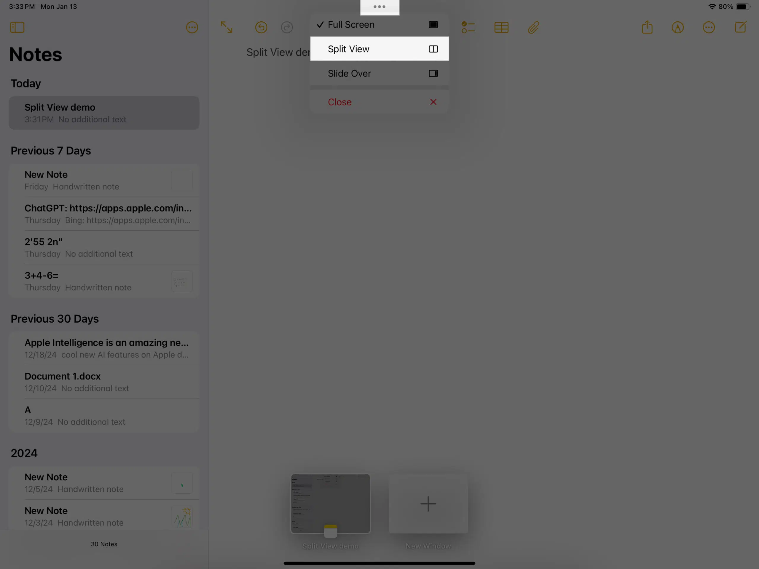 - Tap the three horizontal dots in the top-middle of the screen and select Split View.