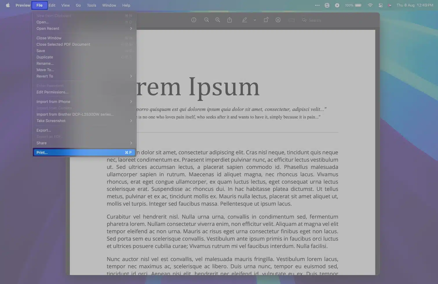 - Click on File → Print. Alternatively, you can press the Cmd + P keys on your keyboard.