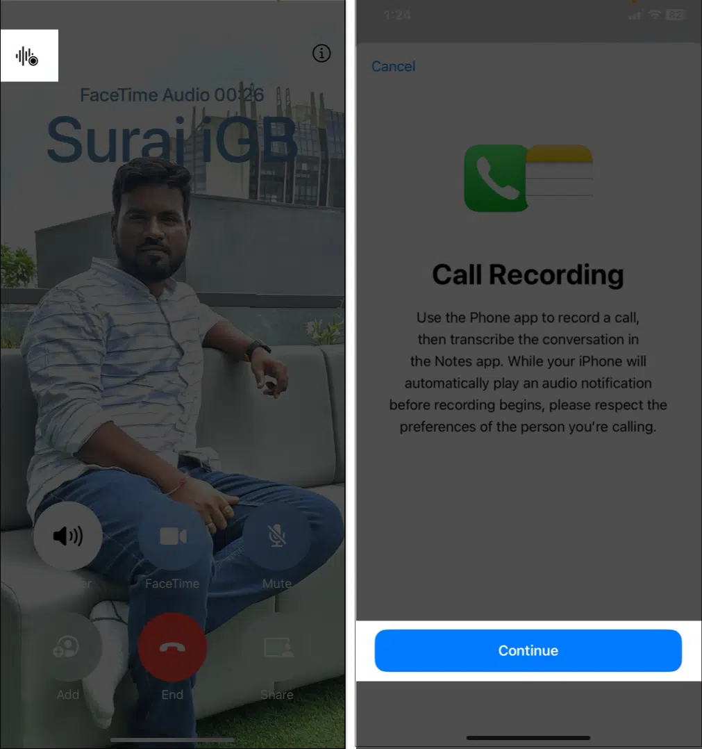How to record FaceTime audio call on iPhone or iPad in iOS 18