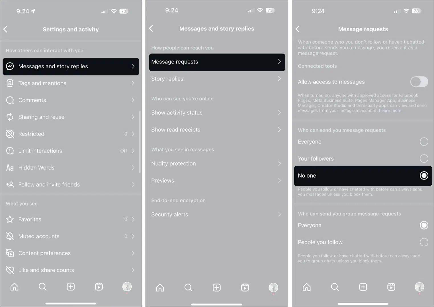Let’s explore different ways you can control who gets to message you on Instagram: