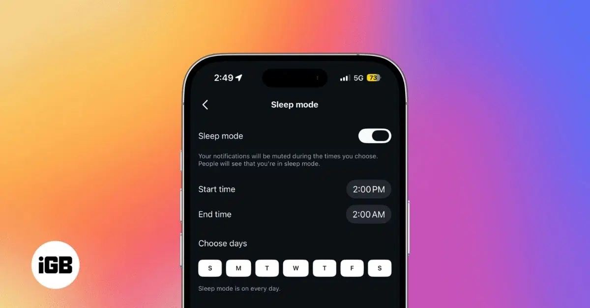 You can set a specific time range during which Instagram will automatically pause notifications. Instagram also gives you flexibility in how you schedule it. You can select the days Sleep mode should run, adjust the start and end times, and modify the schedule at any time to match your routine.