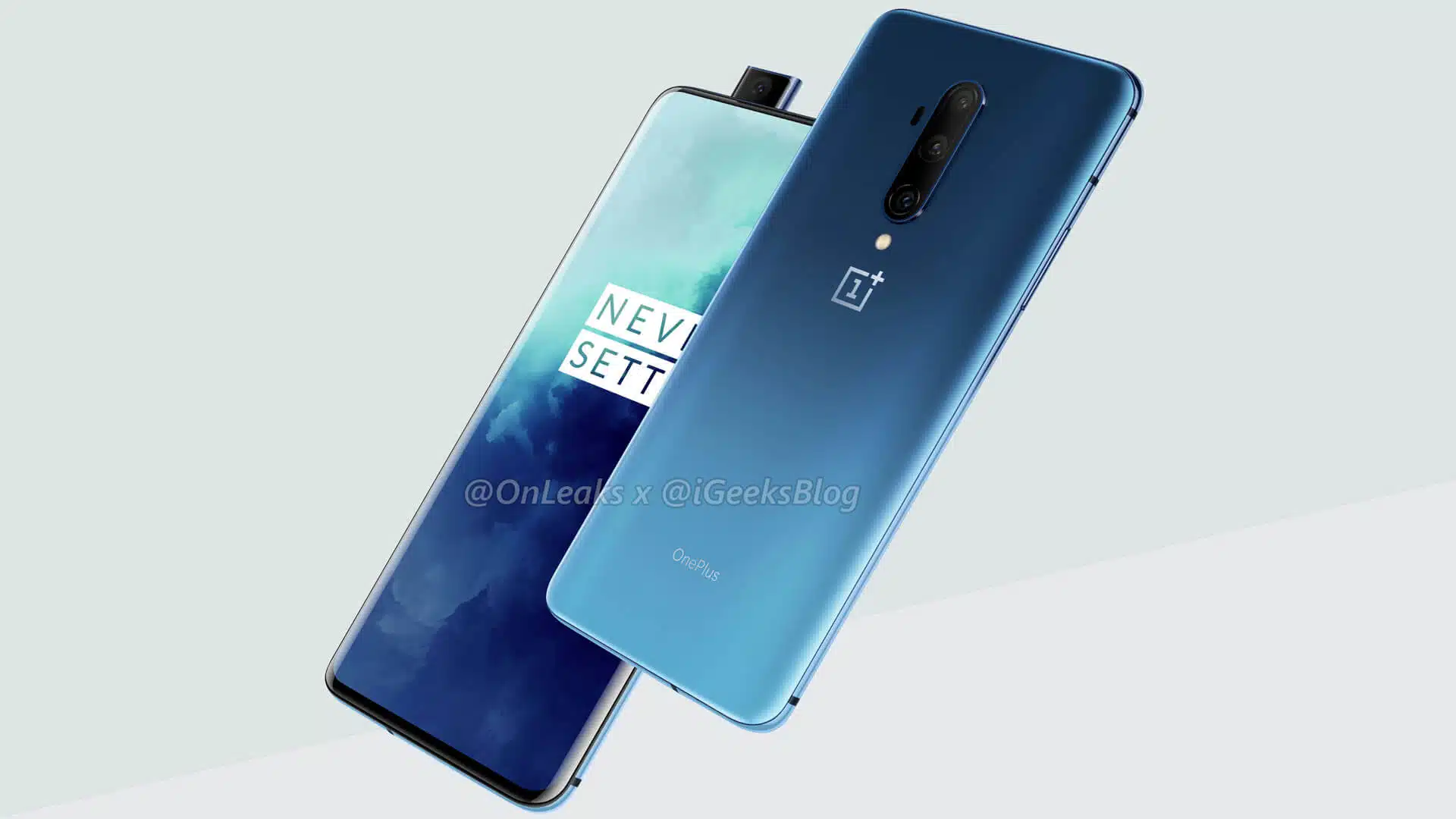 Here is OnePlus 7T Pro official press image from Steve H.McFly a.k.a OnLeaks. The image reveals the upcoming 7T Pro in haze blue color with a triple-lens camera.