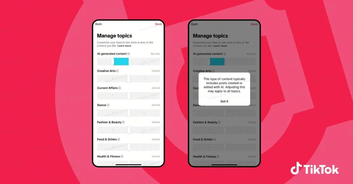 Think of it like tuning your feed for cooking or makeup content, you can dial it up or down, but not shut it off. The same rule applies to AI. TikTok says this gives users more personal control without removing content types entirely.